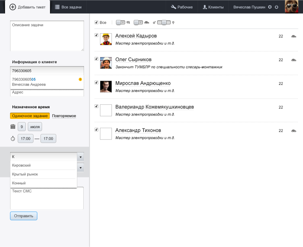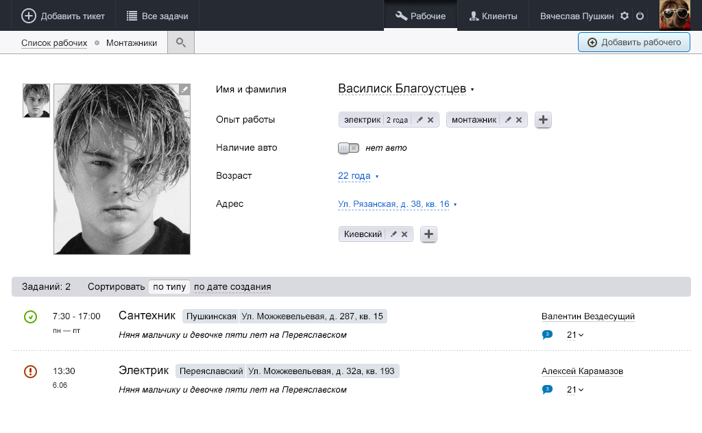 Сам проєкт – це адмінка сервісу, який займається підбором персоналу для різних побутових задач. Сервіс частково автоматизований, але сам підбор виконують модератори, тому дашборд був необхідний.
